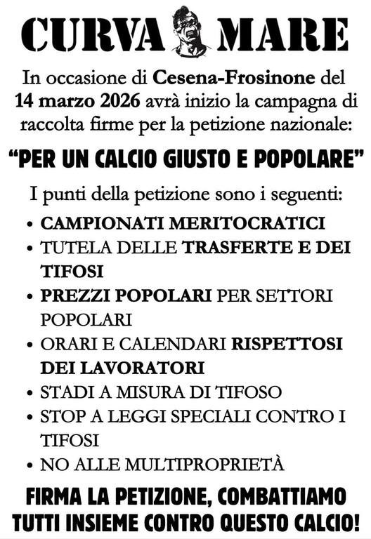 Data: 11/3/2026 ore 18:44 La sera del 10 marzo, a Vicenza, nella suggestiva cornice della sala del Monte di Pietà, qualcosa di significativo si è messo in moto. Qui ha infatti avuto luogo una conferenza stampa volta a presentare una petizione al Senato della Repubblica che sa di resistenza e buonsenso, intitolata “Per un calcio giusto e popolare”. A parlarne, difronte alla platea raccoltasi nei pressi di Piazza dei Signori, l’avvocato Federico Pesavento, il presidente del Centro Coordinamento Club Biancorossi Emanuele Arena e due rappresentati della Curva Sud berica, Carlo Florio e Christian Brojanigo. Sarebbe tuttavia un errore pensare che si tratti di un’iniziativa isolata e locale, perché le piazze promotrici sono molte, da Salerno a Parma, passando per Genova e coinvolgono oltre 120 tifoserie, dalla Serie A alla D, che hanno avuto la capacità di mettere da parte le proprie divergenze di prospettiva per dare vita ad un progetto a difesa non tanto del mondo ultras in sé, ma del tifo in generale. |
