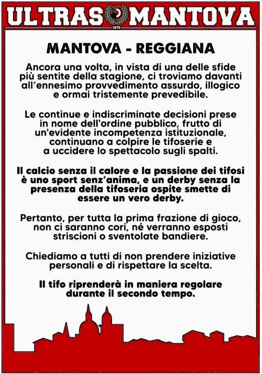 Data: 5/12/2025 ore 12:14 Ricorso al Tar rigettato, il calcio senza tifosi non ha futuro Il Tar della Toscana ha respinto questa mattina il ricorso presentato da Orgoglio Amaranto contro il decreto prefettizio che ha imposto il divieto di trasferta per i tifosi dell’Arezzo che avrebbero voluto seguire le sorti della propria squadra del cuore a Livorno in occasione della partita di campionato fissata per sabato prossimo 6 dicembre. Nonostante il ricorso depositato contenesse spiegazioni valide e mettesse in luce la eccezionale sproporzione tra le misure interdittive prese e i fatti realmente accaduti facendo riferimento in particolare all’ultima trasferta, effettuata senza restrizioni a Livorno e nella quale non ci sono stati episodi da rilevare, il tribunale amministrativo non ha ritenuto di dare seguito alle richieste del comitato dei tifosi, socio di minoranza della SS Arezzo, elencando anche la concomitanza di una manifestazione che non ha nulla che vedere con la partita di calcio e cioè il giuramento dell’Accademia Navale a Livorno. Come comitato restiamo interdetti e amareggiati, ma anche consapevoli di aver messo in campo tutte le azioni possibili per ottenere un rovesciamento delle decisioni. Di certo possiamo dire che senza una mobilitazione attiva da parte delle società e delle istituzioni che le rappresentano come la Lega di Serie C il problema non avrà una soluzione concreta. Il calcio senza tifosi, non ha futuro. |