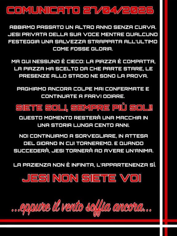 Data: 27/4/2026 ore 18:27 Però manca lo striscione "Oggi vinciamo noi". Il Lettore Amarcord |